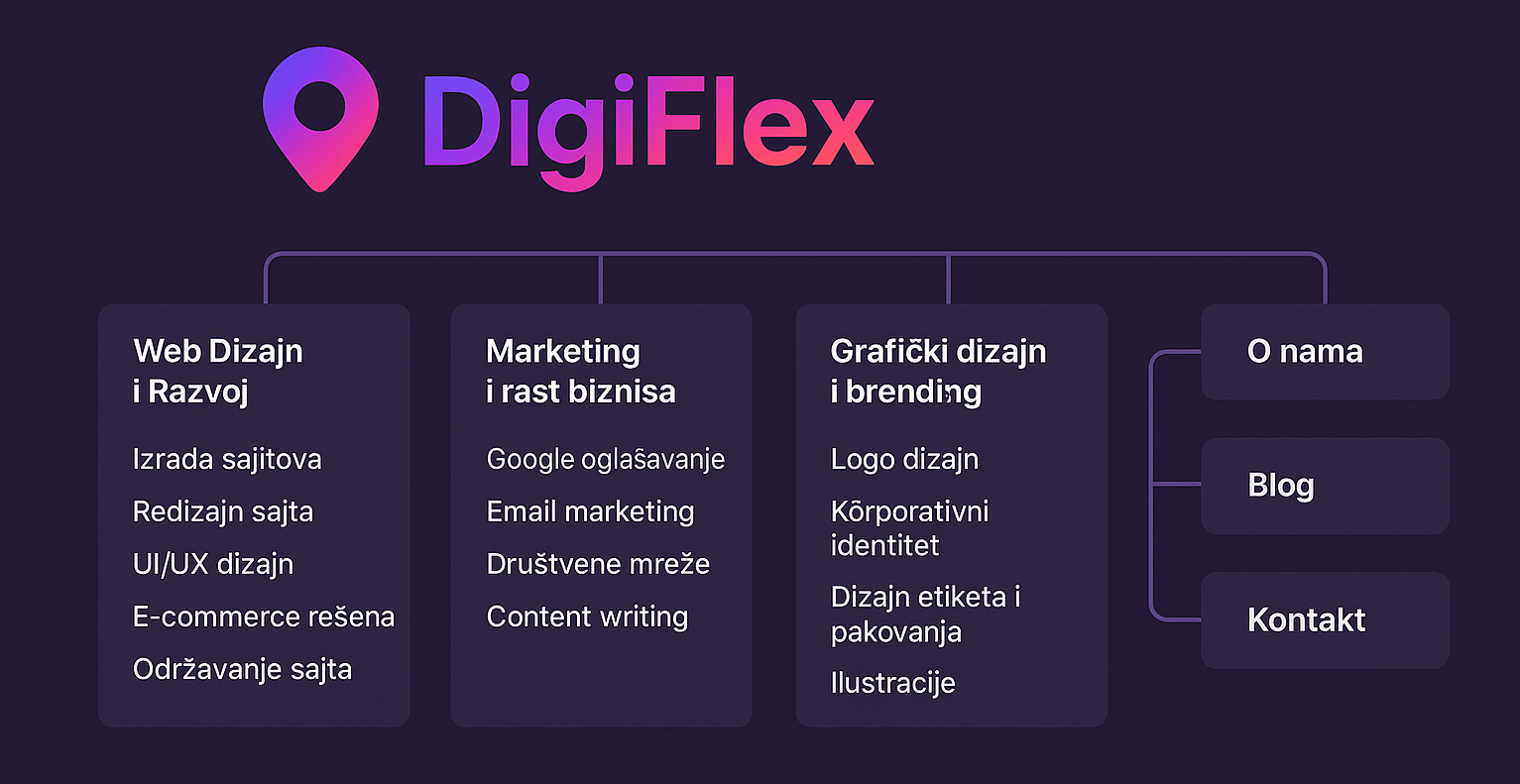 - Mapa Sajta/Aplikacije: Kreiramo logičku strukturu sadržaja i navigacije kako bi korisnici lako pronašli ono što im treba.